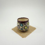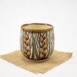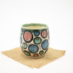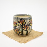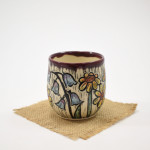 This tumbler is thrown on the wheel using porcelain stoneware clay in our studio, located in Calgary, Alberta. The graphic on the tumbler has been hand-carved into the surface using the sgraffito technique, which involves covering the tumbler’s surface with our handmade black slip and carving away until the image is finished. This means you can feel the slightly raised, carved texture as you wrap your hands around a stemless glass of wine, or an ice-cold lemonade at the end of a long day. While we create different series of designs each tumbler is made and decorated individually, so that no two pieces are identical, and each design is matched with one of our brightly coloured glazes.
